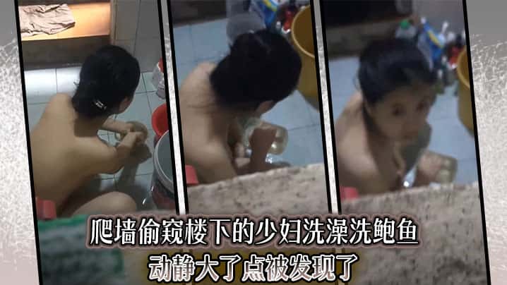 爬墙偷窥楼下的少妇洗澡洗鲍鱼动静大了点被发现了