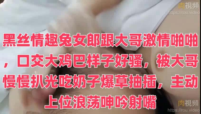 黑丝情趣兔女郎跟大哥激情啪啪,口交大鸡巴样子好骚,被大哥慢慢扒光吃奶子爆草抽插,主动上位浪荡呻吟射嘴